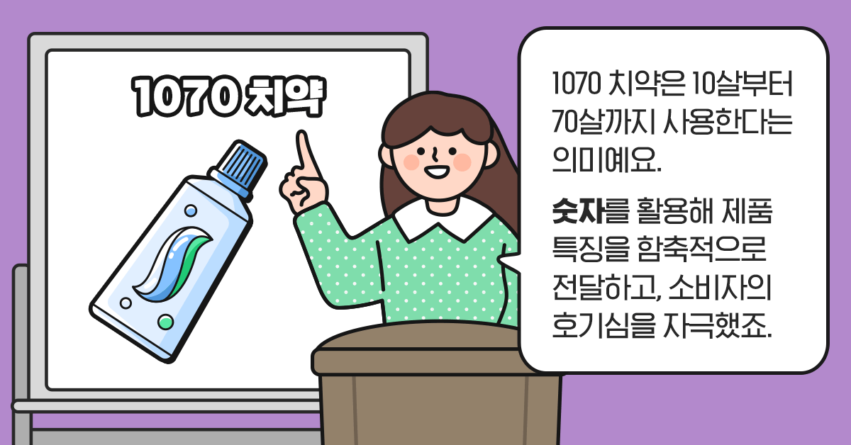 Q. 다음 중, 1070 치약의 제품명을 정할 때 사용한 마케팅 방식으로 가장 적절한 것은 무엇일까요?