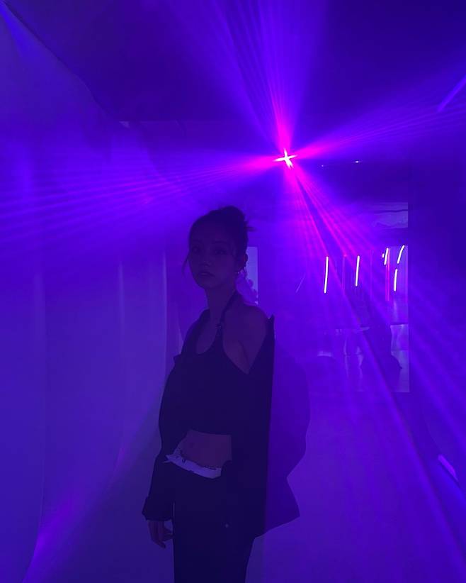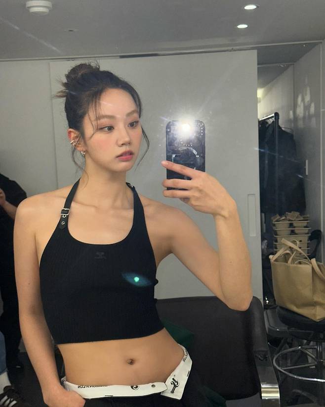 사진 속 혜리는 크롭나시와 블랙팬츠를 코디해 시크한 올블랙 패션을 선보였습니다.