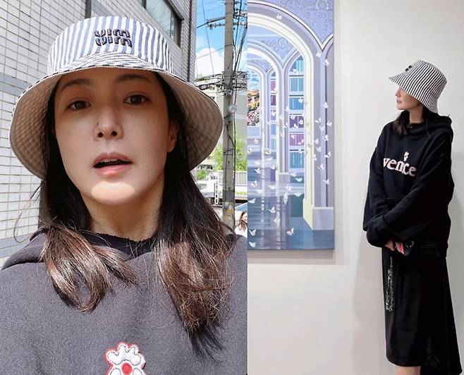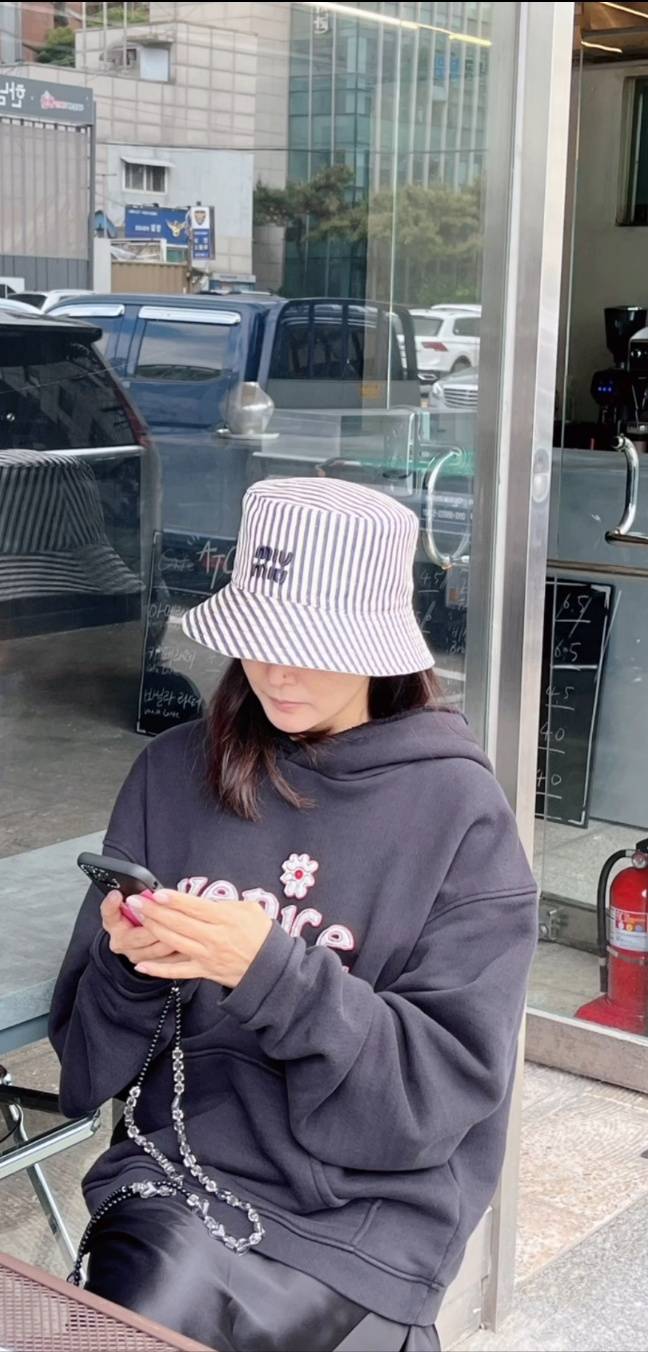 특히 김희선은 줄무늬 패턴의 벙거지 모자와 클래식한 디자인의 블랙 스니커즈를 착용해 멋스러운 스트리트 패션 감각을 부각했습니다.