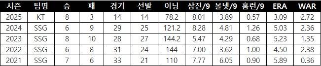 | ▲ KT 오원석의 주요 투구 기록(출처: 야구기록실 kbreport) |