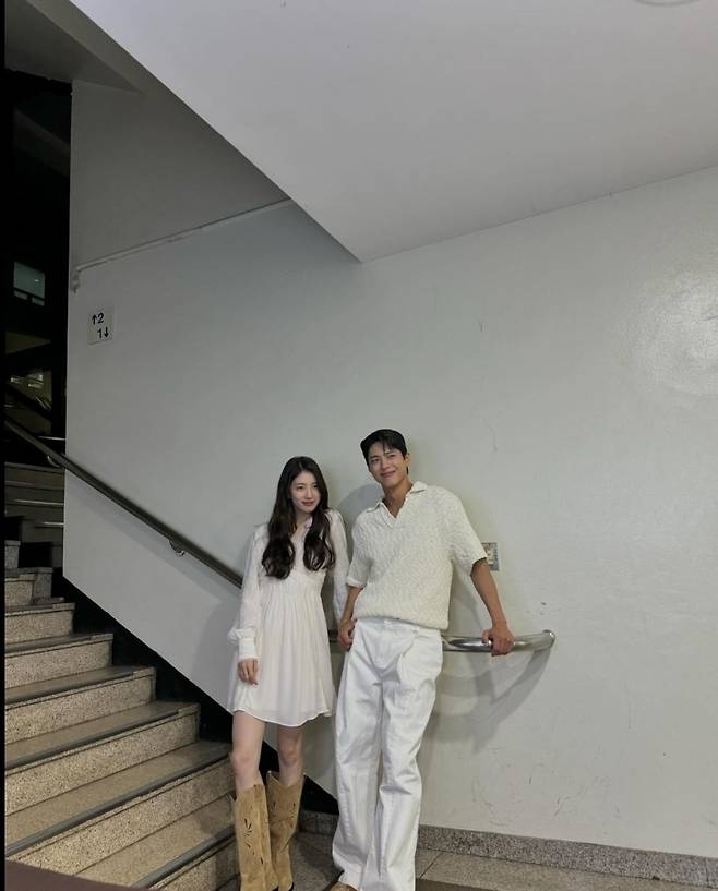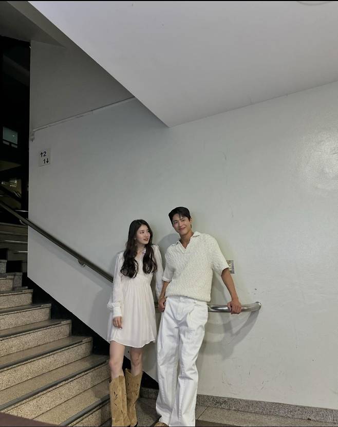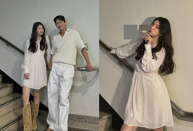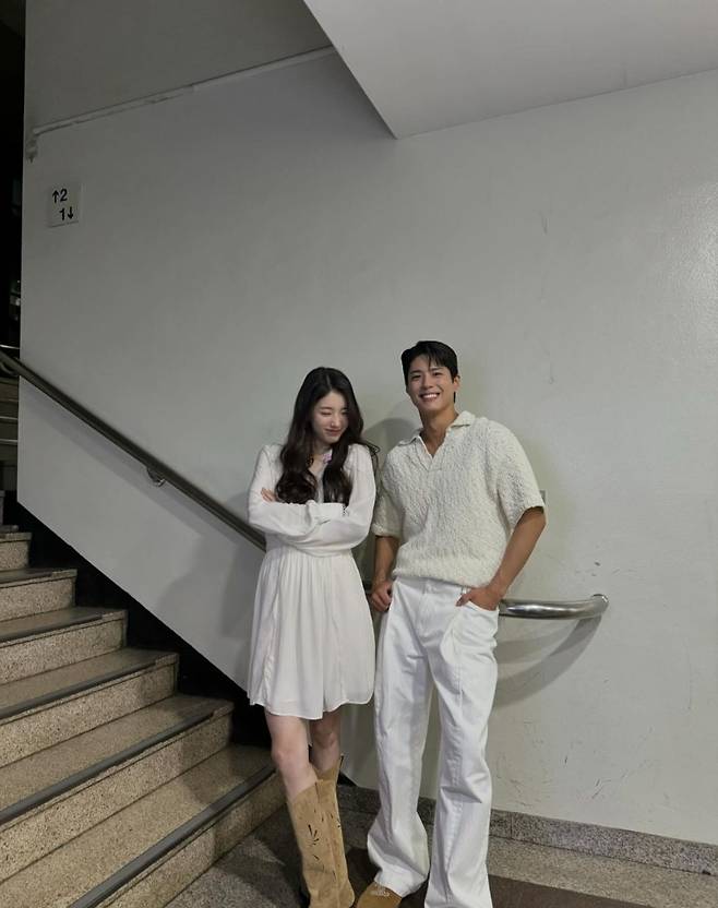 수지는 박보검에게 '앞니 플러팅'을 하며 톤온톤 시밀러룩을 맞춰 입은 모습을 공개해 보는 이들의 이목을 집중시켰습니다.