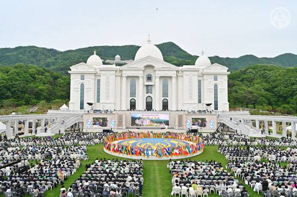 천원궁은 지하 4층~지상 3층, 대지 3만7922평에 연면적 2만4700평 규모다. 통일교 그룹 계열사인 선원건설이 시공을 맡았다. 통일교 측은 천원궁 건축 의도로 ‘세계 평화를 위한 철학 활동을 통해 일반 대중과 문화적 소통하기 위함’이라고 밝히고 있다.