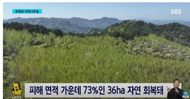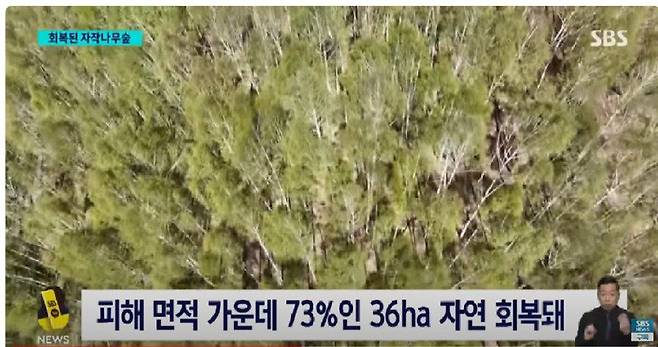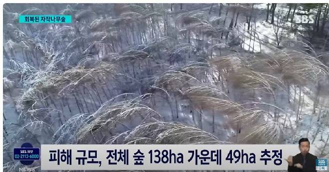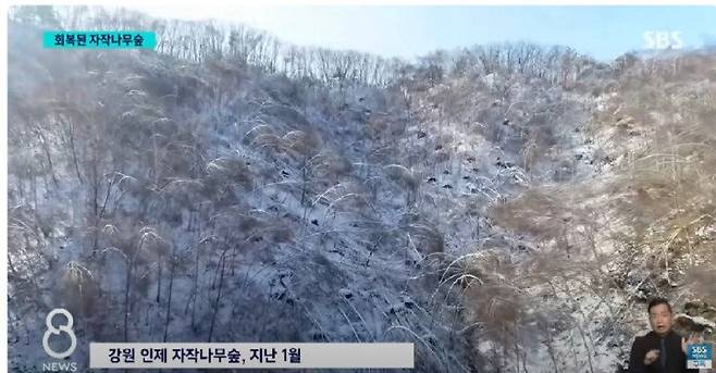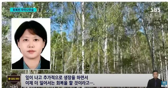 기적처럼 많은 수의 자작나무가 다시 일어섬.