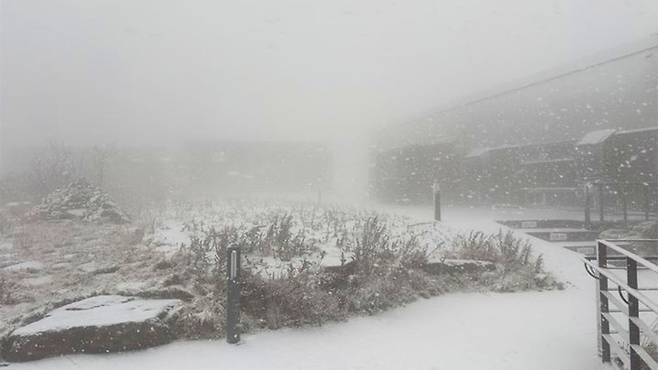 충북 단양에 위치한 연화봉 정상에 포근히 내려앉은 첫눈은 계절의 전환을 알리는 조용한 신호처럼 느껴졌습니다.