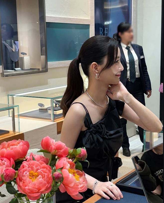 또한 미니멀한 실버 주얼리와 은은한 메이크업으로 전체 스타일의 완성도를 높였습니다.
