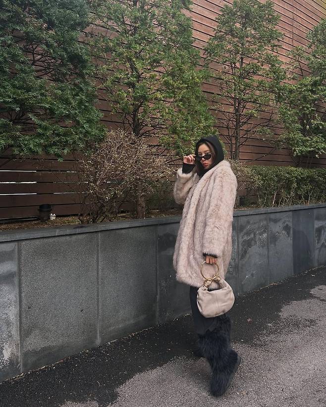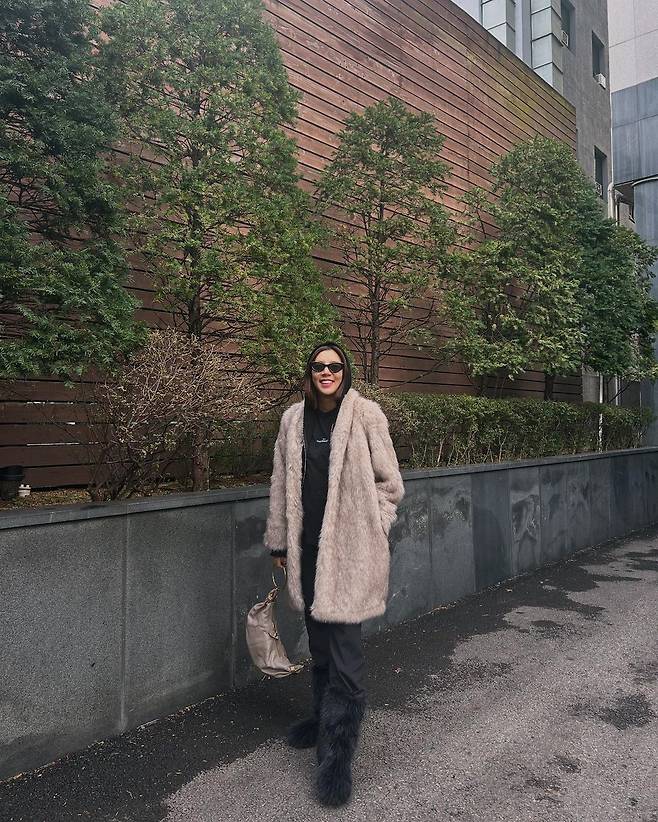 공개 된 사진 속 손담비는 블랙 컬러의 후드티를 입고 블랙 팬츠를 입어 캐주얼한 스타일링을 선보였다. 베이지 컬러의 롱 퍼 코트를 입고 베이지컬러의 가죽 핸드백을 들어 세련된 코디를 선보였다. 또한 그레이 컬러의 털 부츠와 선글라스를 써서 남다른 패션 감각을 자랑했다.