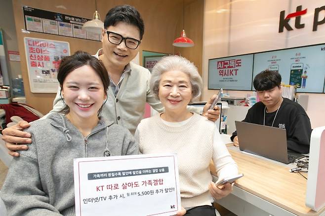 KT는 4일부터 가족 고객의 혜택 강화를 위해 결합상품 ‘따로 살아도 가족결합’의 가입가능 인터넷/TV 회선수를 기존 1회선에서 5회선으로 확대한다고 밝혔다.사진=KT