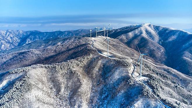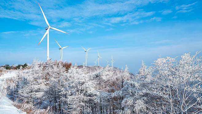 2008년부터 가동된 20기의 풍력 발전기는 연간 이산화탄소 6만 톤 감축 효과를 내는 친환경 상징물로, 겨울엔 눈꽃과 어우러져 태기산의 대표 풍경을 완성한다.