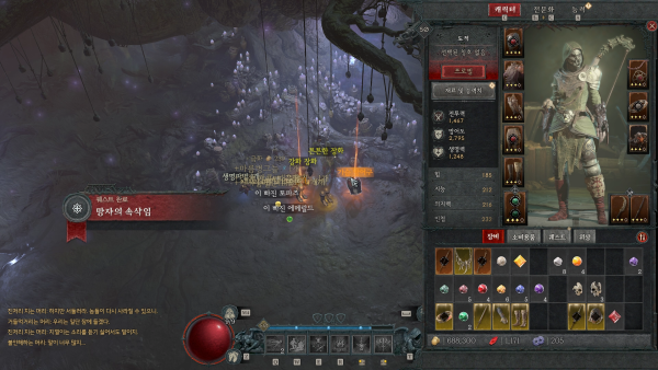 ④ 지하(드루이드): 맹독 덩굴 사용 시 자신의 주위에 원 모양으로 산사태를 시전합니다. 대지 기술이 중독된 적에게 주는 피해가 10~20% 증가합니다.