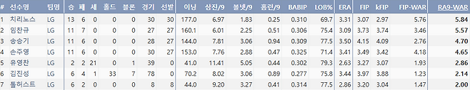 국내 선발진 역시 '대기만성' 임찬규와 좌완 듀오 손주영, 송승기가 확고한 주전으로 자리 잡았다.