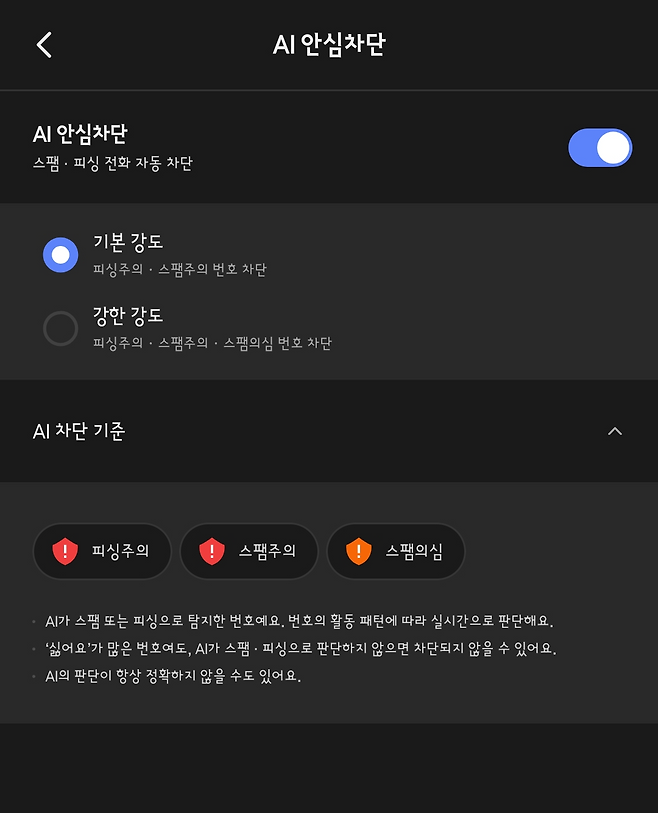 이 기능은 전화가 오면 실시간으로 통화 내용을 분석해 보이스피싱 의심 시 알림을 주고, 통화 화면에 경고 메시지를 띄운다.