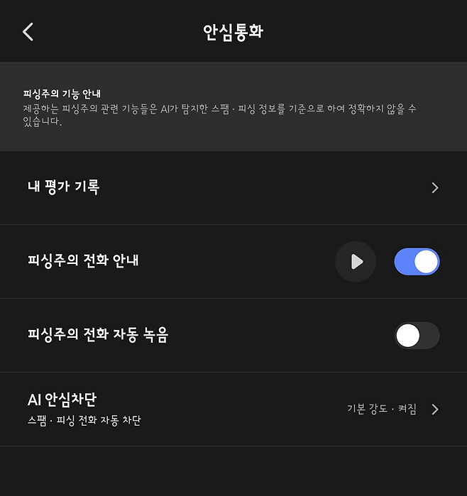 ‘보이스피싱 의심 전화 알림’ 활성화