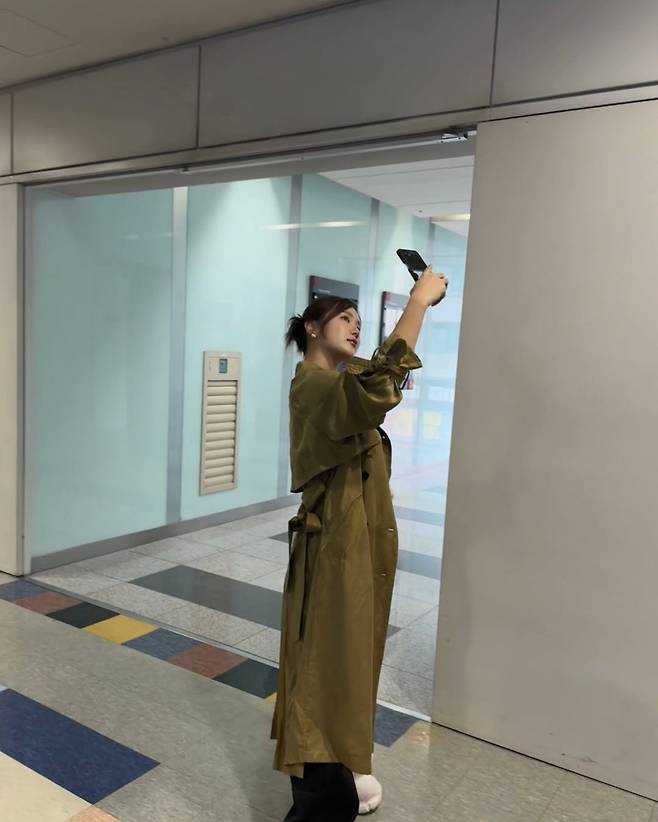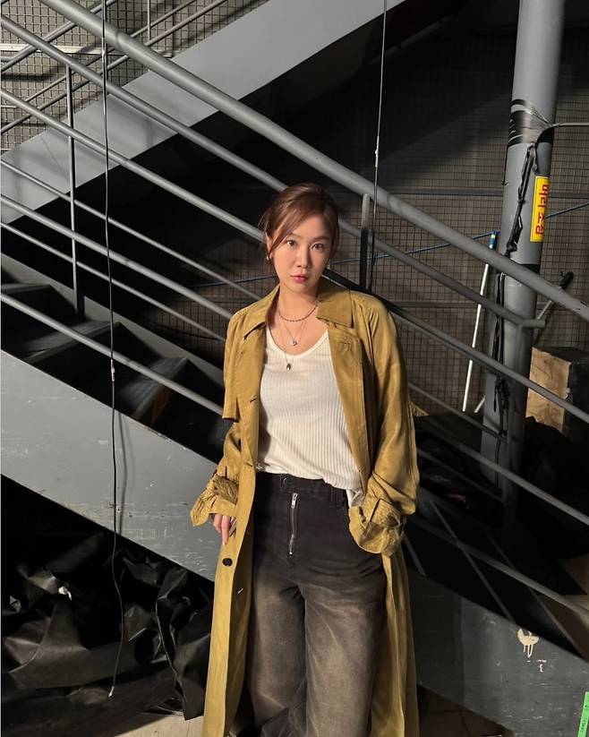 소유가 멋스러운 트렌치코트 스타일링으로 시선을 사로잡았습니다.