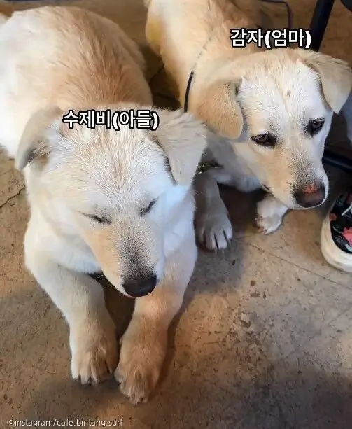 매일 카페에서 깨발랄하게 지내던 녀석이 보이지 않자 은근히 아쉬웠던 사장님. 그런 사장님을 위해 깜짝 손님이 나타났으니 바로 보호자가 수제비와 엄마 강아지 '감자'를 데리고 카페로 놀러 온 것이다.