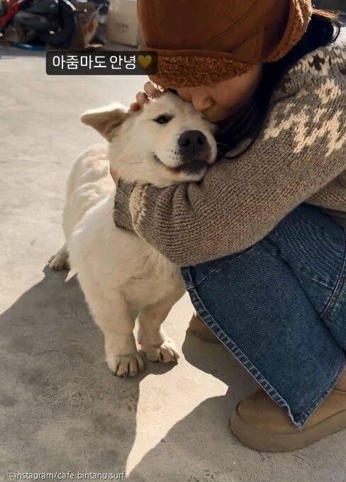 덕분에 사장님은 모르는 '남의 집 개' 챙겨주느라 행복한 고생을 했다고. 사실 녀석의 본명은 '만두'인데, 이름도 모르고 챙겨주다 "뜨다 만 수제비처럼 생겼다"며 카페 안에서는 수제비라고 불린단다.