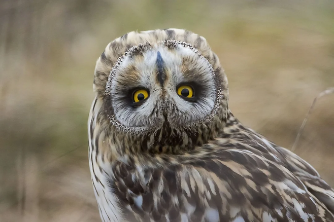 부엉이는 사냥할 때 날카로운 시야가 필수적이에요.