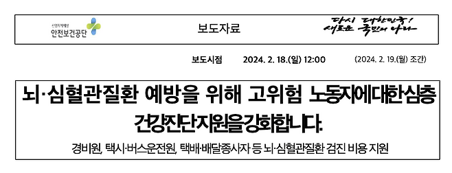 이번 심층건강진단 비용지원 프로그램은 노동자의 건강을 지키고, 질병 예방을 통해 더 안정적인 근무 환경을 조성하는 데 중요한 역할을 할 것입니다. 뇌·심혈관 질환 고위험군 노동자라면 이 기회를 통해 자신의 건강을 체계적으로 관리하고 보호하는 데 필요한 지원을 받으시기 바랍니다