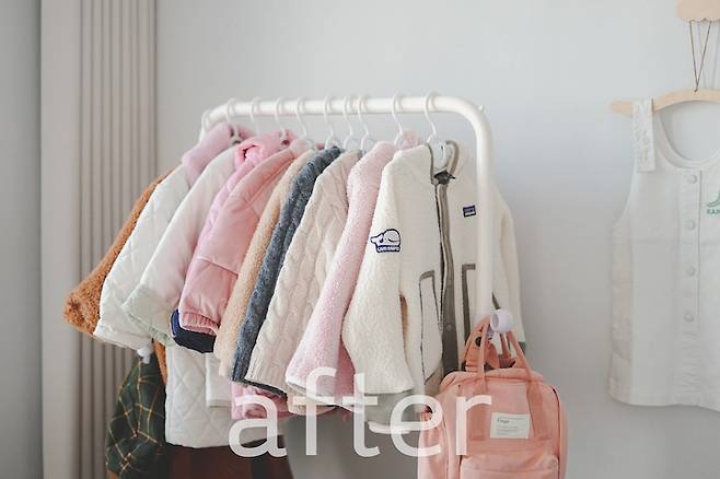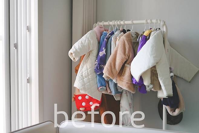 이동 행거도 정리를 안 하면 정리 전 사진처럼 지저분해 보일 수 있어요.