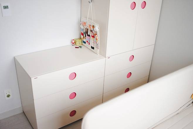 아이 옷 정리를 책임져주는 일룸 서랍과 옷장입니다. 저는 아이 옷을 어른 옷장으로 일부 옮겨 두거나 하지 않고 아이방에만 두고 있어요.