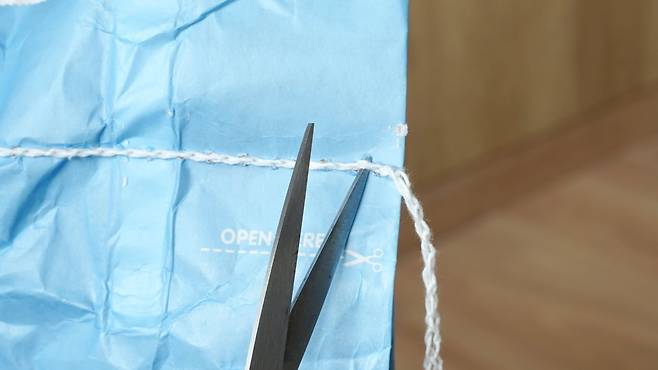 일자 모양으로 되어 있는 실을 자를 경우 쉽게 자를 수 없어요.