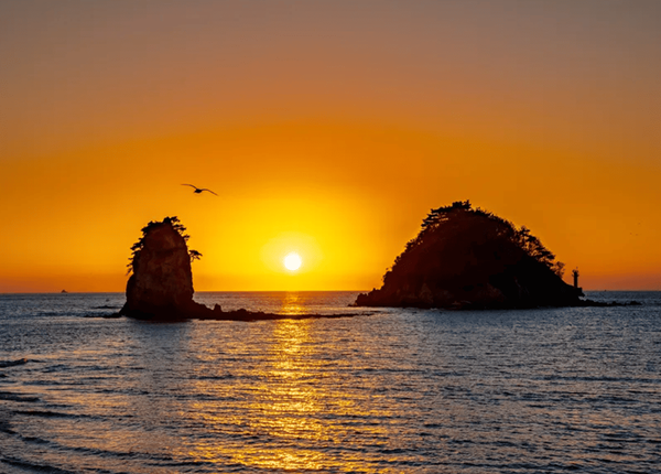충남 태안군 안면도에 위치한 꽃지해수욕장은 서해안의 일몰 명소로 유명한 이색 해변입니다. 이곳을 특별하게 만드는 건 바로 바다 위 우뚝 솟은 두 개의 바위섬, 할미·할아비바위인데요. 석양이 바위 사이로 떨어지는 순간은 마치 서유럽 어느 절벽 해변을 연상케 할 정도로 이국적인 분위기를 자아냅니다.