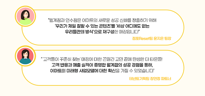 이마트는 지난 2020년 이마트 월계점을 대대적으로 리뉴얼해 오픈하며, 대형마트가 나아가야 할 방향을 제시했다. 단순히 쇼핑만을 목적으로 찾는 공간이 아닌, ‘오래 체류하고 싶은 매장’. 이마트가 그리는 ‘미래형 마트’의 모습이었다.