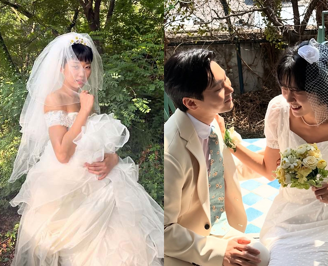 공개된 사진 속에는 이주영의 모습이 담겼습니다. 이주영은 순백의 튜브톱 웨딩드레스를 입고 미소를 짓고 있습니다. 이어 면사포를 쓰고 카메라를 응시했습니다.