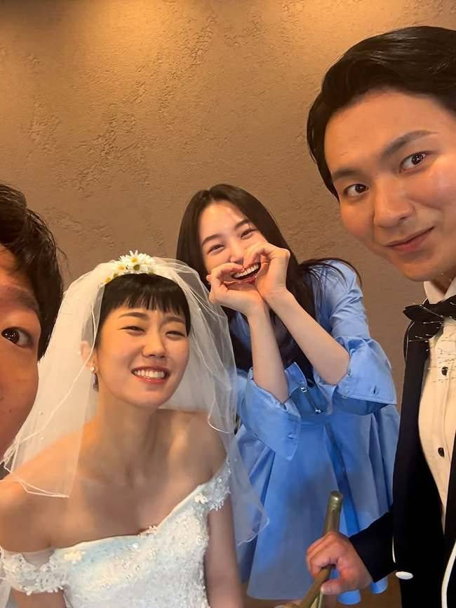 또한 웨딩드레스를 입은 이주영의 옆에는 원지안과 조민국이 자리했습니다. 또한 이주영은 원지안과 남편 강기둥과 함께 셀카도 공개했습니다. 이주영이 웨딩드레스를 입은 건 JTBC 토일드라마 '경도를 기다리며' 촬영 때문이었습니다.