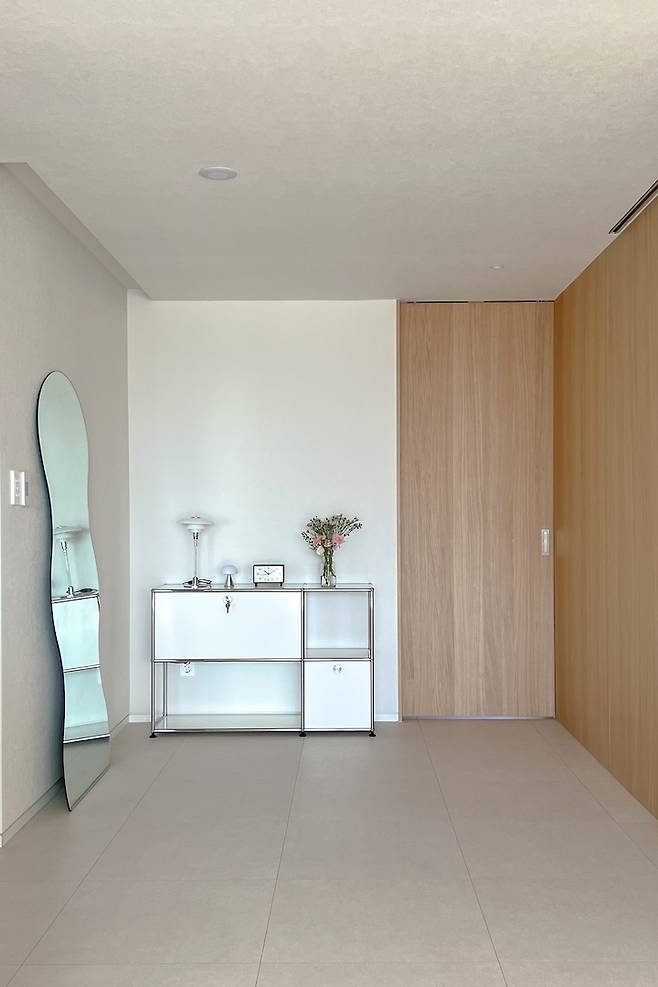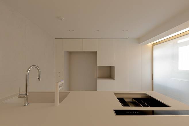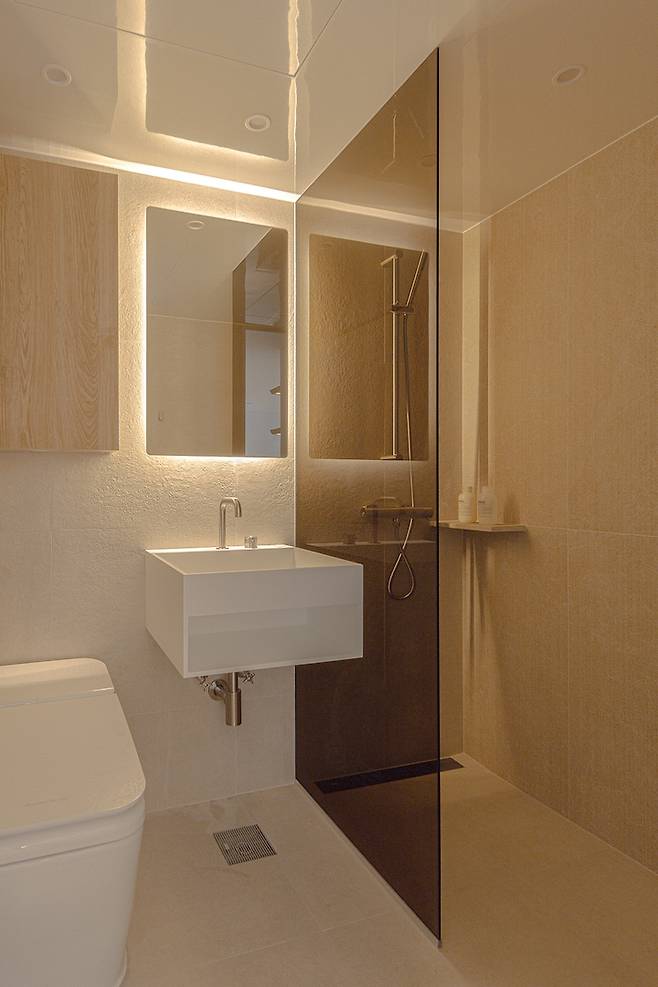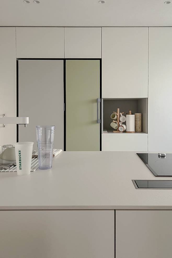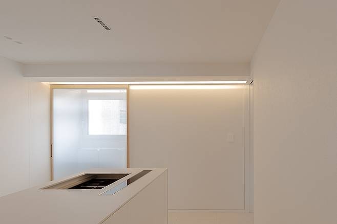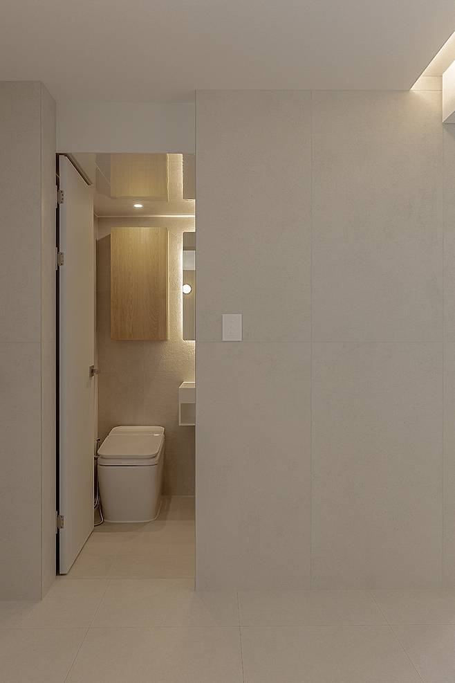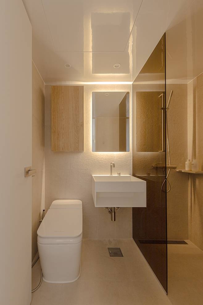 이사진을 보면서 무몰딩이 주는 간결함이 얼마나 대단하고 아름다운지 느낄 수 있었는데요. 문을 닫으면 조금 오버를 더해서, 화장실이 어딘지 알 수 없을 정도인 느낌을 받아 무몰딩은 미니멀리즘의 끝판왕이라 가히 말할 수 있지 않나 생각이 들었습니다.