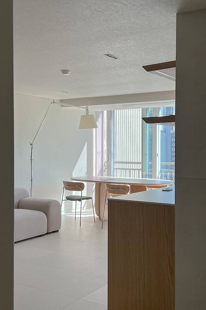 모든 것을 빌트인으로! 주방 아일랜드 테이블에 서서 바라본 거실의 모습입니다. 오픈형 주방인 듯 하면서도 오픈되지 않은 주방이에요.