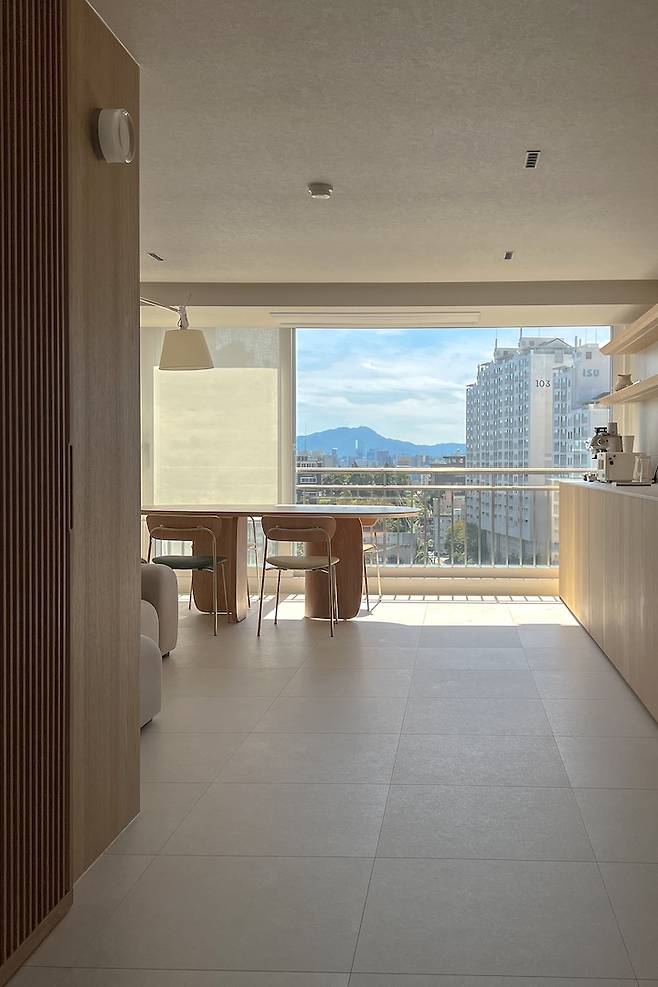 물론 연식이 오래된 아파트를 직접 마주했을 때는, 냉장고를 둘 공간조차 없는 좁은 ㄱ자 구조의 주방과 고르지 못한 바닥의 상태, 거실이 훤히 보이는 현관 등의 아쉬움은 있었지만, 발코니가 확장된 넓은 거실과 거실에서 보이는 뻥 뚫린 뷰는 저의 마음을 사로잡기에 충분했습니다.