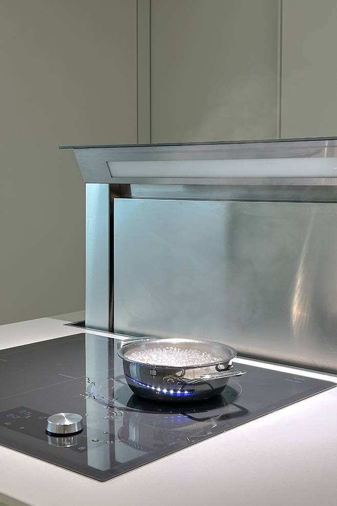 구축 아파트 특성상 층고가 낮아 천장 후드 설치와 배관 연결까지 난제가 많을 것 같아서 선택하게 된 다운 드래프트 형태의 후드입니다.
