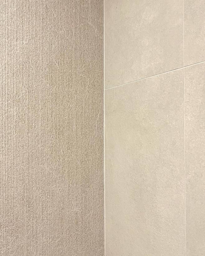 그래도 나름의 포인트는 공간마다 꼭 있었으면 하는 저의 욕심에 이리저리 타일을 보다, 비슷한 톤이지만 재질이나 무늬가 다른 결을 가진 두가지 타일을 각 벽마다 하면 포인트가 되겠구나! 하는 생각이 들어 픽한 타일들입니다. 직접 집에 넣고나니 더더욱 마음에 드는 포인트라 만족스러워 하고 있습니다.