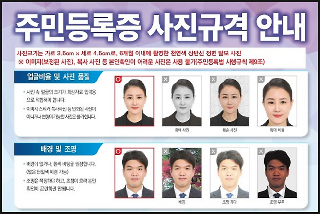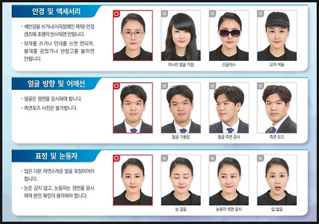사진 속 얼굴 크기가 화상자료 입력용으로 적합해야 하는데요. 이미지 스티커 등 인화된 사진이 아니거나 변형이 가능한 사진은 불가합니다.