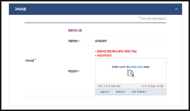 준비물로는 증명사진 1장이 필요합니다.