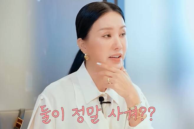 이를 본 엄정화는 "너무 눈꼴셔서 못 보겠다. 둘이 정말 사귀어?"라며 돌직구 질문을 던졌죠.