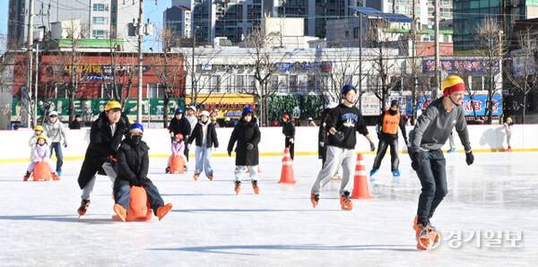 22일 인천시 동구 동인천역 북광장 화도진 스케이트장을 찾은 시민들이 스케이트를 타며 휴일을 즐기고 있다.