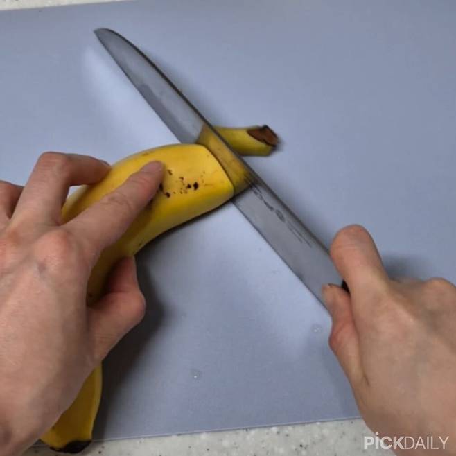 바나나 꼭지는 에틸렌 가스를 내뿜는 부분입니다. 꼭지를 잘라 제거한 뒤 냉장고에 밀봉 보관하면 숙성 속도를 늦추는 효과가 있습니다. 꼭지가 남아 있으면 라인 닿는 부분부터 빠르게 숙성되기 쉬워요.