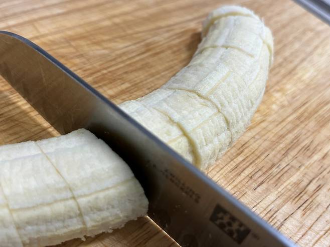 바나나는 적당한 크기로 썰어 줍니다.