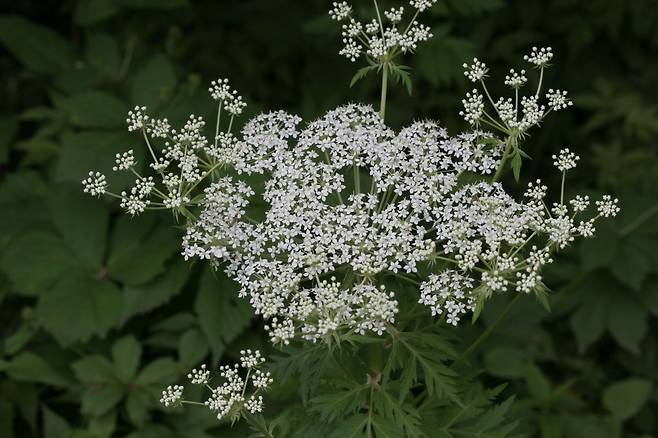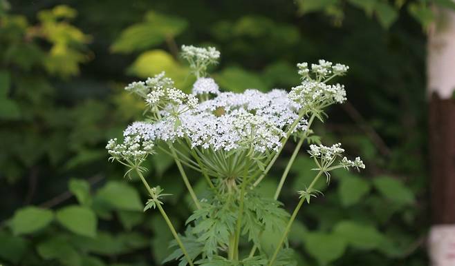 6월이면 산나물 채취가 본격적으로 시작된다. 특히 깊은 산지에서는 평소 보기 힘든 식물들도 모습을 드러낸다. 이 시기, 양지바른 산골짜기에서 하얀 꽃을 피우는 식물이 있다. 이름은 ‘왜우산풀’이다.