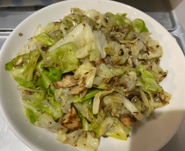 김가루는 소금기가 약간 있으니 너무 많이 넣지 않는 것이 좋고, 손으로 잘게 부수어 넣으면 두부와 양배추 사이사이에 골고루 섞이면서 깊은 감칠맛을 낸다. 이 한 스푼의 김가루가 두부양배추볶음 전체의 밸런스를 잡아주는 중요한 요소다.