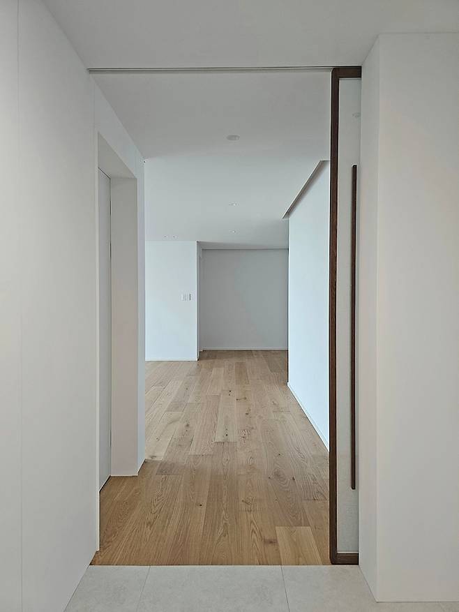 거실에서 현관을 바라본 모습입니다. 단정하고 예쁘네요 :)