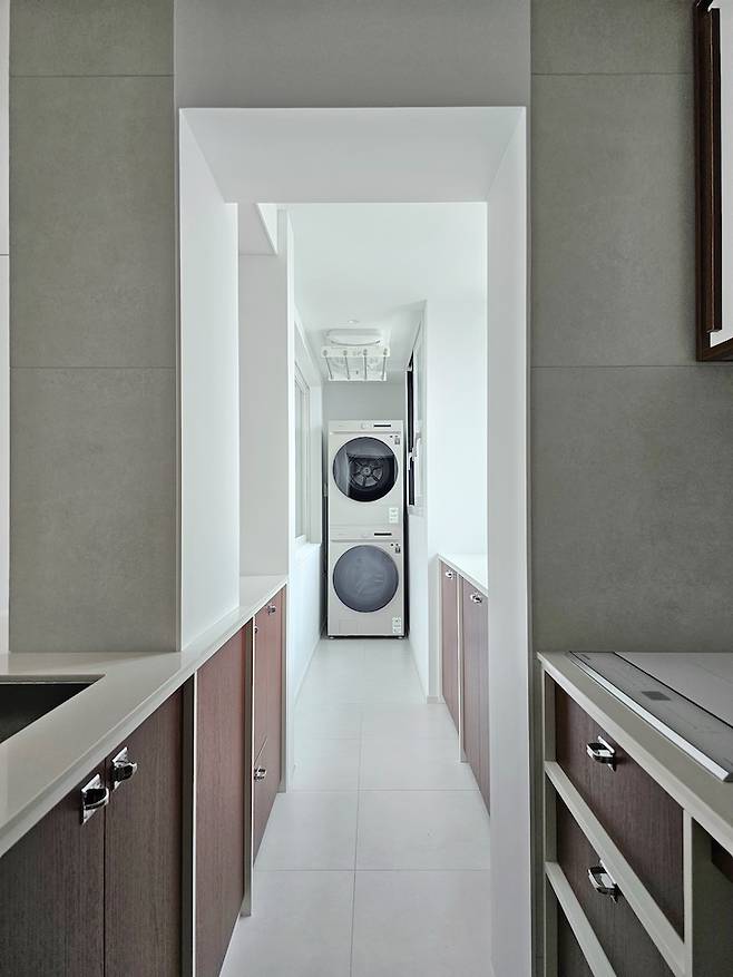 기존 베란다에는 워시타워를 배치해 공간 활용성을 높였습니다.