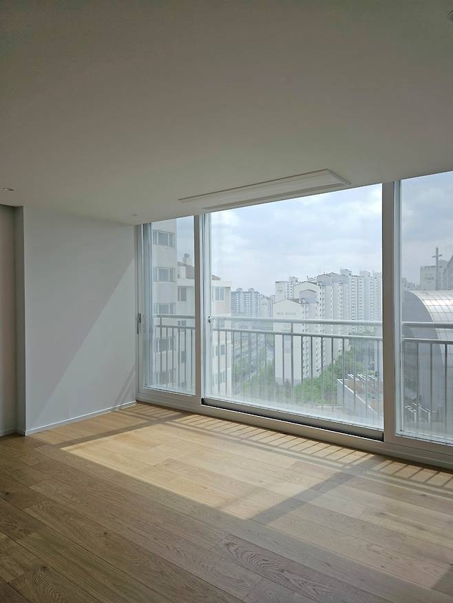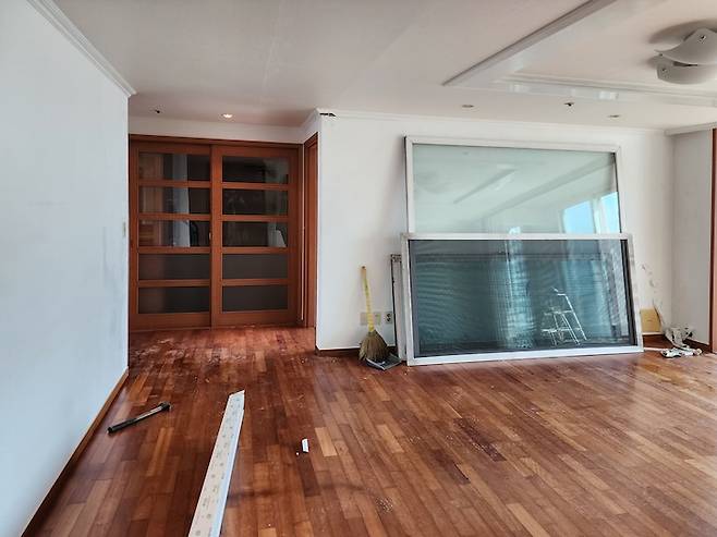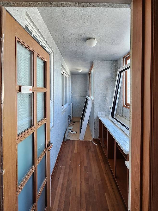 시공 전 거실의 모습이에요. 베란다 확장 시공을 진행하기로 했습니다!