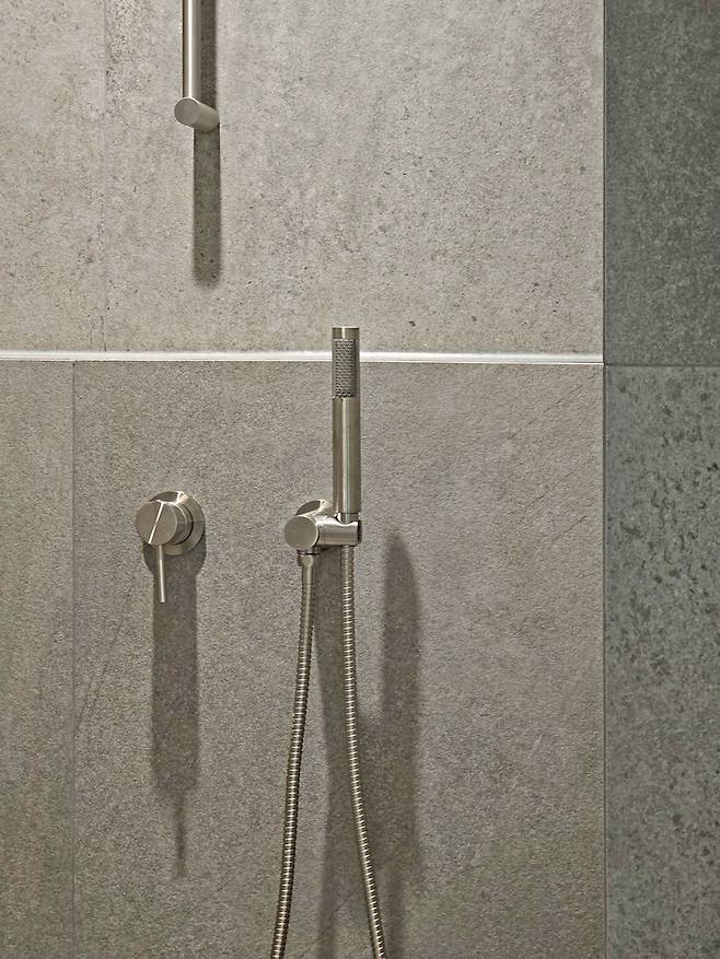 내부에 세면공간이 없어진 만큼 샤워공간을 넓혀주었어요. 조적 파티션으로 통일감을 주면서도 공간 분리를 할 수 있게 구성하였습니다.