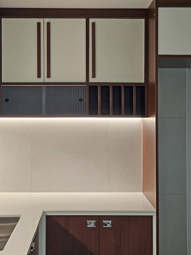 귀여운 상부장 디테일. 소품들이 더해지면 더 예쁜 포인트가 되어주겠죠? 어떻게 꾸며질지 기대되는 공간입니다.