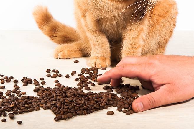 카카오 콩엔 테오브로민 성분이, 커피 콩과 카카오 콩엔 모두 카페인 성분이 들어있어요. 두 성분 모두 고양이에게 위험한 성분으로, 중독 증세를 일으켜 급사할 수 있습니다.