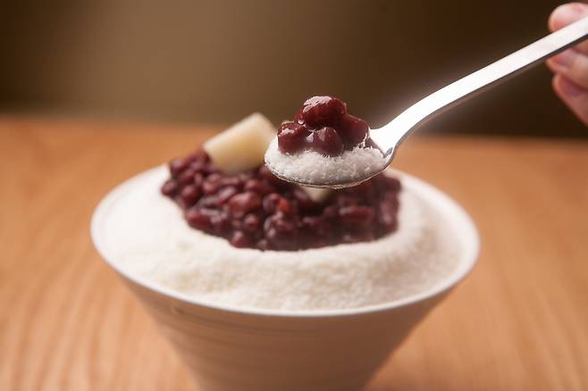- 그릇에 간 얼음을 넣고, 그 위로 물에 끓인 팥을 올려줍니다