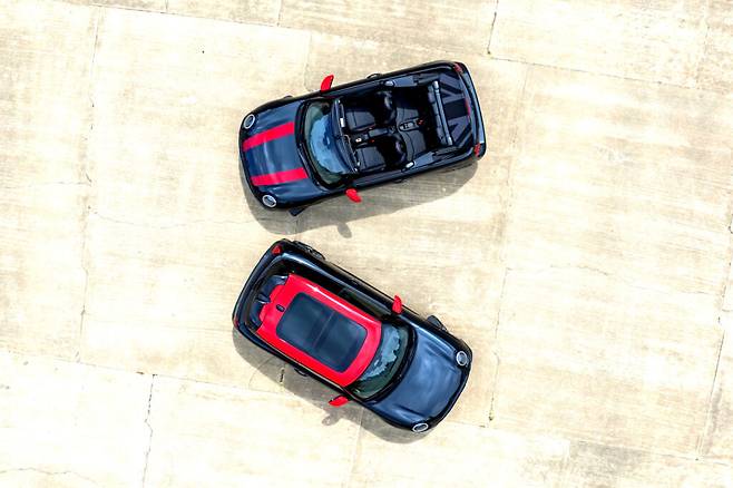 컨버터블 모델은 블랙과 그레이 색상의 소프트탑을 선택할 수 있으며, 유니언 잭 그래픽을 적용해 영국 특유의 아이덴티티를 살렸다.