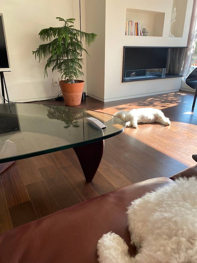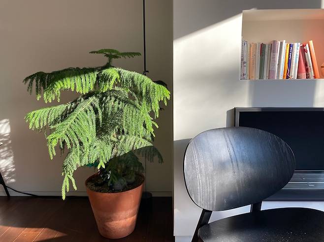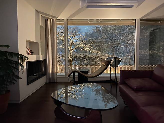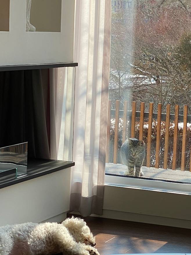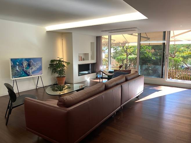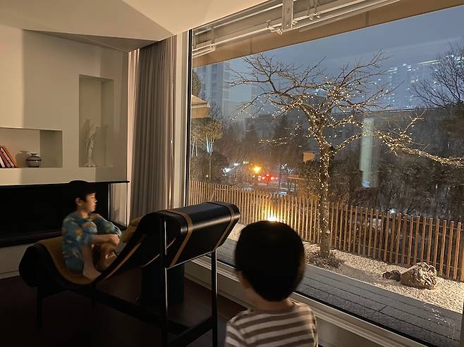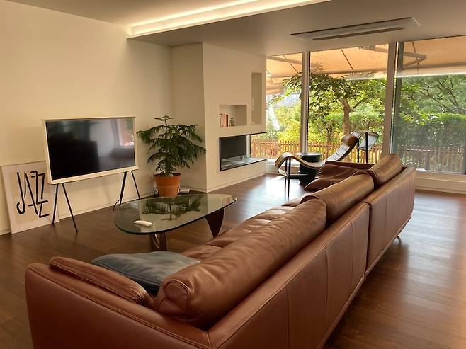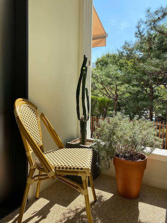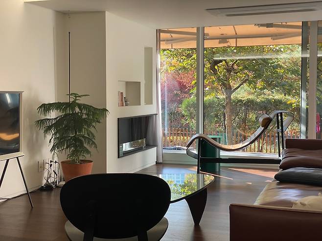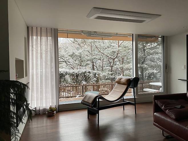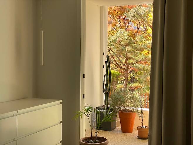 모두가 이 다채로움을 느끼며 사는 중이에요. 원래는 액자를 좋아하지만 창밖을 보는 재미에 푹 빠져 거실엔 아무것도 두지 않지요. 최대한 창밖 풍경을 살리고 싶어 새시도 업그레이드해서 선택한 것이 늘 만족스러운 부분입니다.